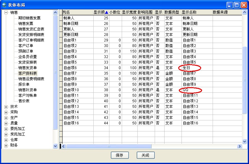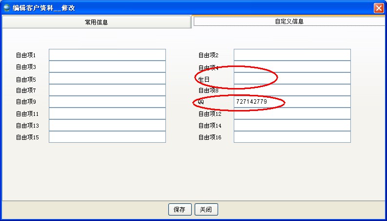 使用者可以增加自定义项。如下图增加了QQ和生日两个自定义项,数据类型是文本型。