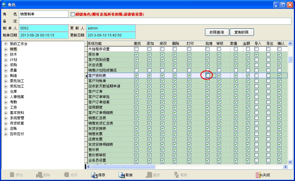 如果用户没有客户资料表的批准权限,则该用户将无法修改销售政策限制选项。