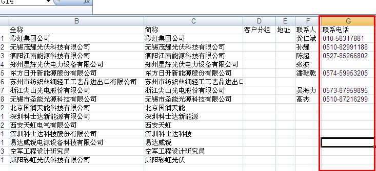 在客户资料表模板中的各列不能修改其列的顺序,如联系电话列必须是G列(第7列)。