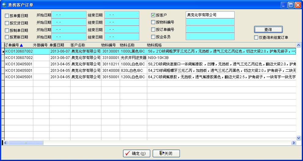 点击【查找】,选择查询条件,查询已有客户订单。