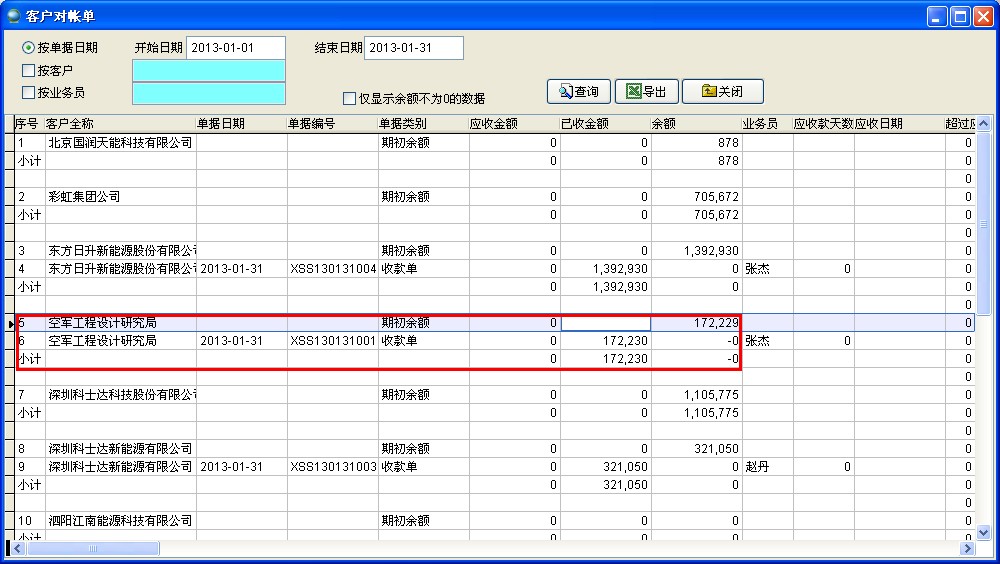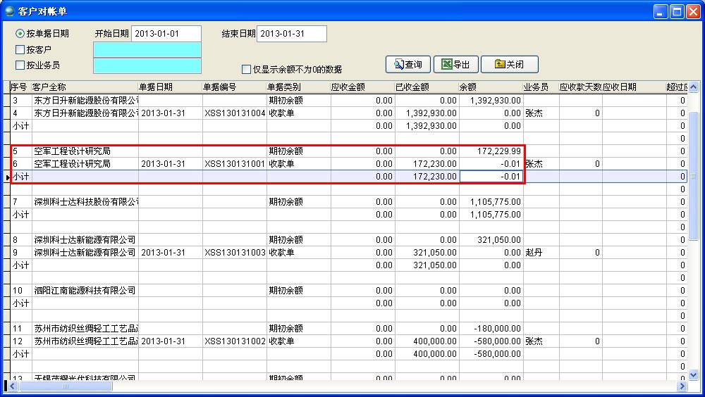 2、改变小数位后余额并不会四舍五入,如下图的客户对账单可以看出改变小数位对数据显示的影响。