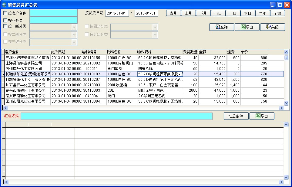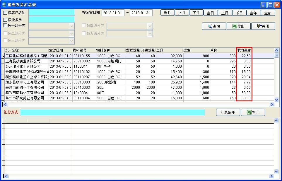 部分单据会预留自由项字段供用户日后使用。如下图的销售发货汇总表,出于管理需要我们需要增加一个字段平均运费,来计算平均每件货物所承担的运费。