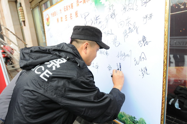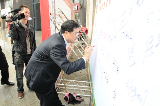 捐款人员在捐款签名板上签名: