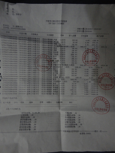 10月2日下午在玉双路中国光大银行打印的最新捐款清单: