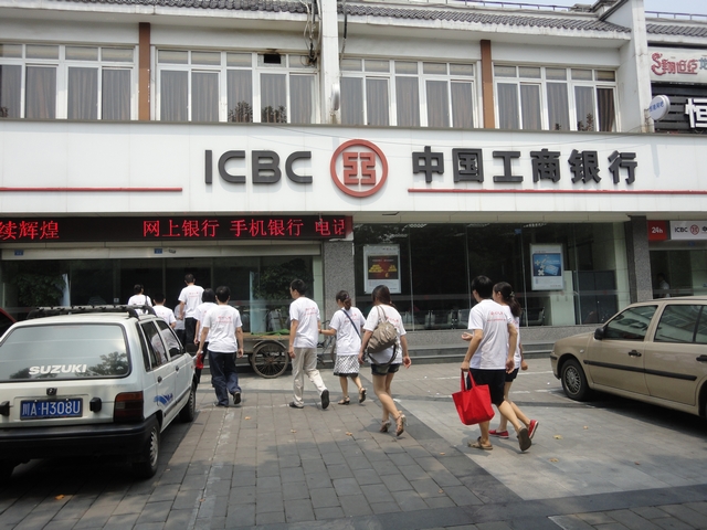 一群醒目的好心人T恤涌入中国工商银行大厅: