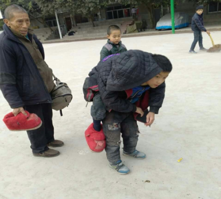 其实,李翔背着李亚宁也吃力,两人的书包挂在他身上,李亚宁使不上力,只有将双手搭在李翔的肩上,李翔每走几步就得往上抖一抖。“李翔个子矮小,看着不像在背,而是驮,总觉得下一秒就要摔在地上。”龚家初中团委书记李芳说。