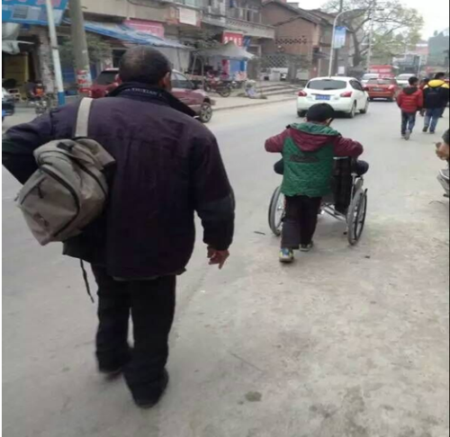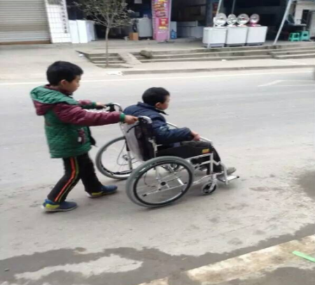 两周前,龚家初中的王老师将好心人捐赠的一部分钱买了轮椅送给了李亚宁,如今,李翔只需要推着李亚宁上学。华西城市读本记者 黄晓庆摄影报道