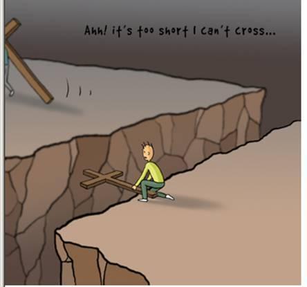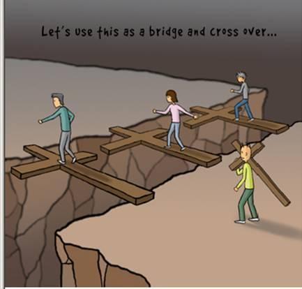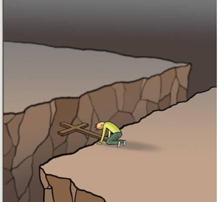 后面的人都慢慢地赶上来了。 他们用自己背负的十字架搭在沟上,做成桥,从容不迫地跨越了沟壑。 20123171037007.jpg 他也想如法炮制。 只可惜啊,他的十字架之前已经被砍掉了长长的一大截, 根本无法做成桥帮助他跨越沟壑! 201231710371207.jpg 于是,当其他人都在朝着目标继续前进时, 他却只能停在原地,垂头丧气,追悔莫及。 这个时候,在他的脑海里回响着一句话: