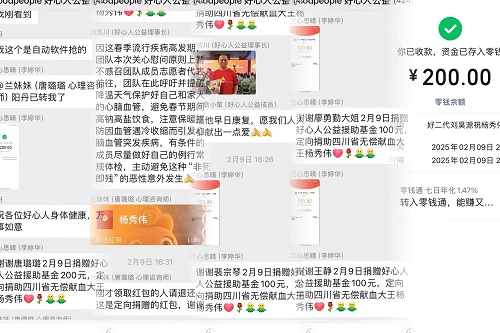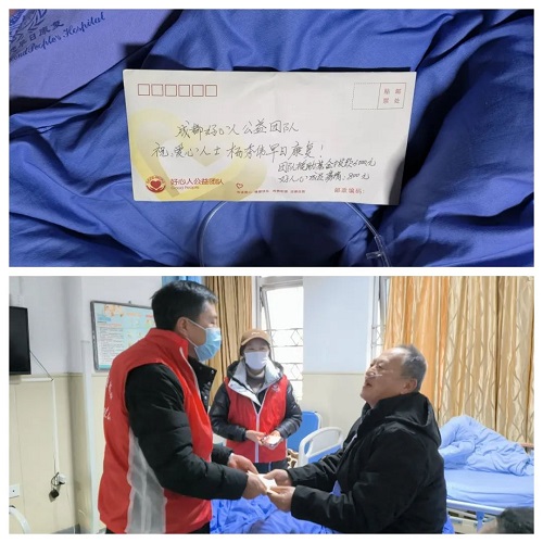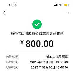 以上呼召团队成员募集的款项共计800元,2025年2月10日,秘书处工作人员黄燕通过现场在病房里面已微信转账的方式转至杨秀伟同志手机,详情见上图。