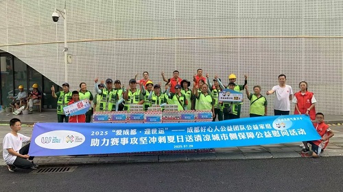 2025年7月26日,今天距离2025成都世运会开幕仅剩12天,伴随世运火种从古蜀之光奔赴万千气象,成都世运会进入赛事攻坚冲刺的关键阶段。清晨,好心人公益团队响应“全市上下齐心办赛”号召,分别在城北体育馆(世运会体育舞蹈竞技项目比赛场馆)与全国网红打卡地二仙桥同步启动“夏日送清凉城市侧助保障”公益慰问行动,向高温下守护城市颜值的环卫工人们致敬,以朴实的关心关怀行动践行“简约、安全、精彩”的办赛主旨,为世运之城的“美容师们”创造更有保障的施展空间。