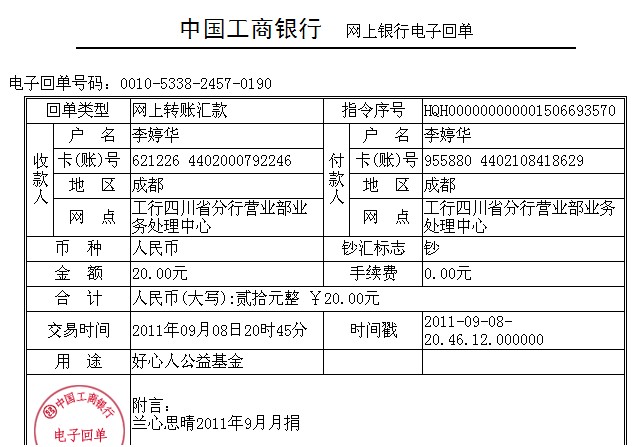 序号33:9月6日goodpeople俱乐部群贝克汉公捐赠好心人公益基金200元