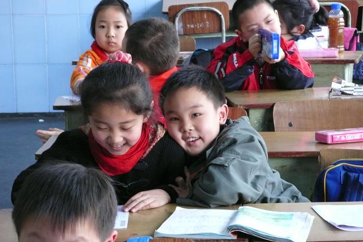 好可爱的一群孩子,妹妹,你就象他们的大姐姐一样也在跟他们一起成长,最前面几张照片里的那个不专心学习却一直盯着身边女孩子的男孩子尤其可爱!呵呵! |