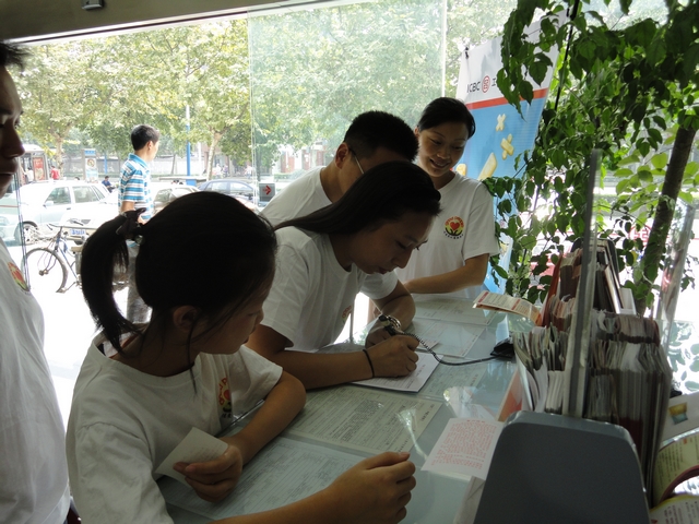 一群醒目的好心人T恤涌入中国工商银行大厅:
