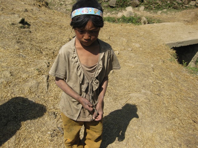可怕的不是贫穷,致命的是看不到改变的希望!!!!!29号,我,小刘,和吕姐下午一点过在火车站接到了来自重庆的小文,车不停轮地就朝着那茫茫大凉山的方向飞奔。 30日,见到了布托县文教局的荣股长,小文支教的事被无情地拒绝了,原因是多方面的,政治的,还有语言等。 1号,我们驱车赶向布托县,飞奔在蜿蜒的山路上,听着阅兵仪式的广播,为祖国母亲的大寿高兴,希望在我们的努力下,我们的彝族同胞也能跟我们手拉手,心满意足地跟我们共同幸福。 到了乌科乡,已是中午时分。中心小学的阿力校长奉献了陪家人过节的时间,全程陪同我们,当起了我们的向导和翻译。 乌科乡离布托县14公里。人口1700人,都是彝族。平均海拔2800米,地处高寒,只能产出洋芋,苦荞,燕麦这三种低产农作物。地少,产量低,收获的粮食根本就不够吃上一年。所以他们一天只能吃上两顿,基本顿顿土豆,有时荞麦饼或者燕麦糊。 2009101317321869.jpg 2009101317322969.jpg 2009101317324269.jpg |