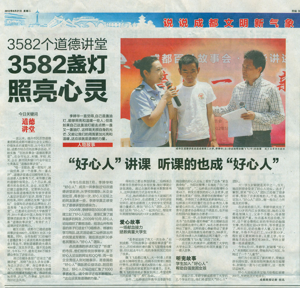 “好心人”讲课,听课的也成“好心人”(成都商报-道德讲堂)3582个道德讲堂 3582盏灯照亮心灵