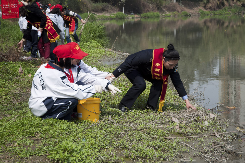 最后,大家来到沙河边,一起清理岸边的白色垃圾。