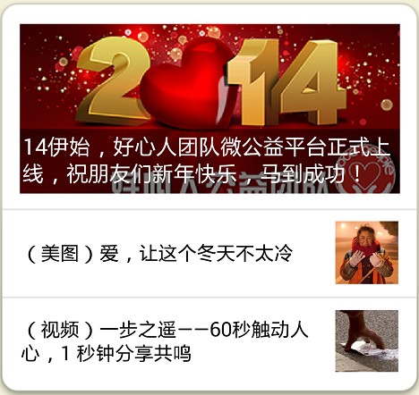 新的一年,新的开始!祝贺好心人公益团队微信公众平台正式上线  |