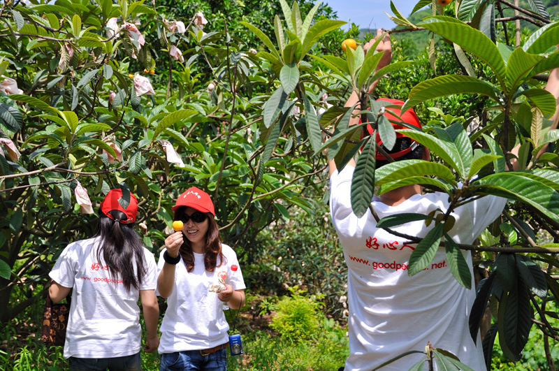 午后阳光正好!虽然有点热,但是挡不住我们摘枇杷的激情!