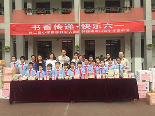 2016年5月17日初夏的季节清早的九点阳光遍洒满了大地,在团队理事长钟廷俊钟老师的带领下,团队成员孙丽、胡利辉、刘丽来到成都市铁二院小学参加捐书仪式。一进校门就看到摆放的整整齐齐的几箱捐赠书籍。