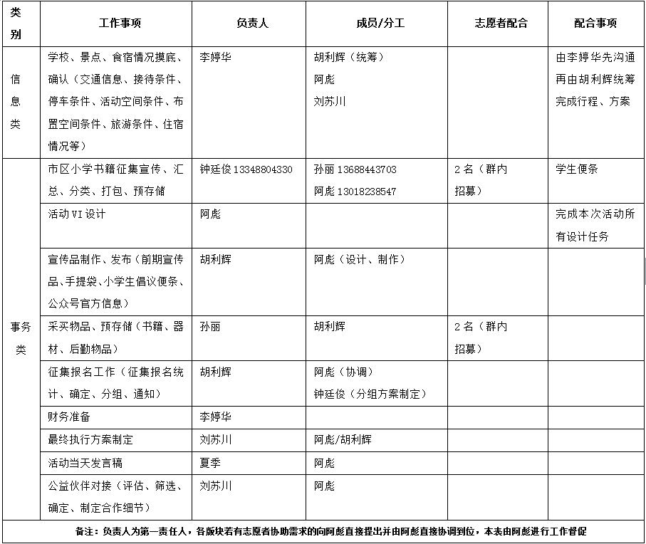 ( 备注:如报名人员具备针对本次公益行为对象有益的才艺等,报名时请向小组负责人进行说明)