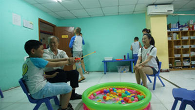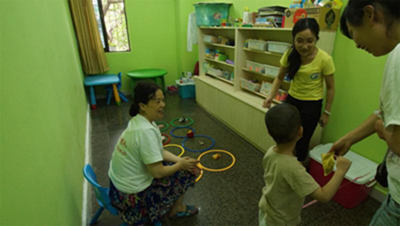 午休时间,当我们跟随学校的黄校长前往教室的时候,年龄较小的孩子们孩子睡觉,年龄稍大的孩子们已经在教室里自由活动着,陆陆续续有家长带着孩子们来到学校上课。 对于一个母亲来说,被孩子奶声奶气的叫着“妈妈”是多么幸福的一件事,但这对这些孩子们的妈妈来说,却是多么难得。患有自闭症的孩子最大的特征就是语言能力的缺乏,他们无法用上帝赐予的声音去表达自己的情感与需求。自闭症孩子喜欢简单、直接,很多时候他们无法用语言表达,可是他们拥有丰富的肢体语言。