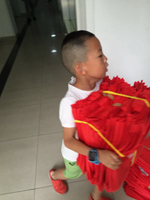 5:40-5:55 各结对组志愿者步行至岗位,现场赠送夏季防暑物资袋(备注:4份防暑慰问袋由后勤车1供给);