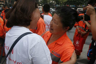 5:35-5:40 结对志愿者家庭培训、分组,完成与环卫工人结对,分工;