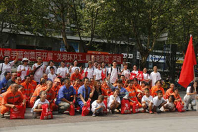 9:00 全体集合(集合地:成都理工大学大门外广场,集合人员:4组志愿服务家庭、所有参加活动的志愿者、全辖区环卫工人,防暑慰问袋由后勤车1、2共同供给);
