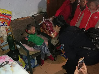 大年十五元宵节,我们的“好二代”曹方韩、郑依璨、杨昊锟相约,用春节收到的压岁钱购买牛奶、大米、菜籽油和元宵汤圆等爱心食品,在好心人李婷华,王庆生、大黄燕、小黄燕、郑江陵的带领下,继续好心人公益2017-2018“暖冬系列活动”之“好二代”春节关爱行动,去看望团队长期结对帮扶的特困家庭和残疾孩子…… 好心人公益团队的志愿者利用休息时间带着我们的“好二代”走访在社区院落特困家庭中: