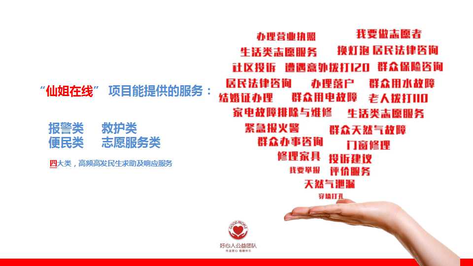 好心人公益2018年重大民生公益项目——“仙姐在线”智慧社区O2O综合便民服务平台,经过团队理事会和开发人员半年多的艰苦努力,已于2018年7月29日全面上线进入市民公测阶段,该平台一经发布得到了相关部门的高度重视和大力支持,也得到了广大市民和参加测试的团队成员的肯定和喜爱,欢迎团队成员继续参与平台测试和意见反馈。具体内容和使用方法请见7月29日零时“好心人公益”官方微信公众号发布的相关信息。