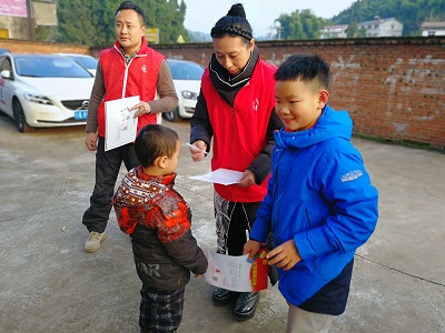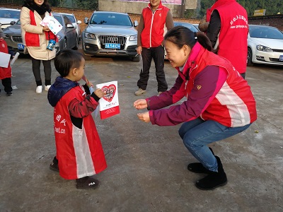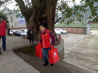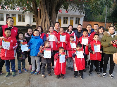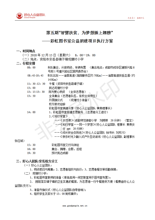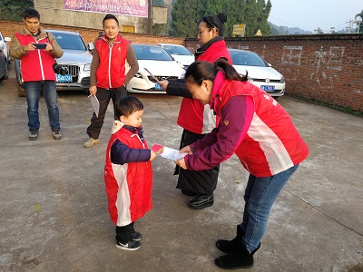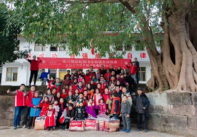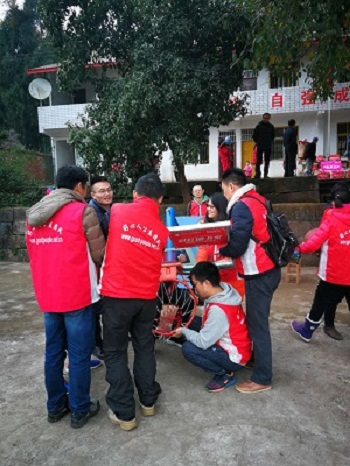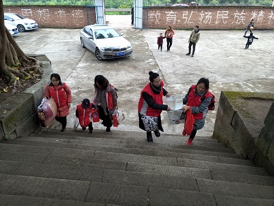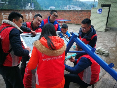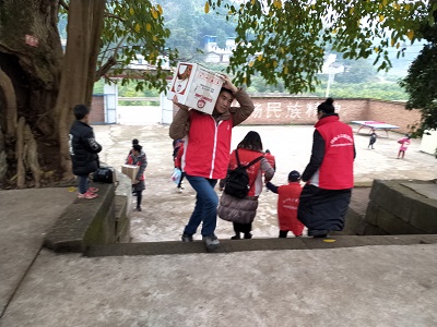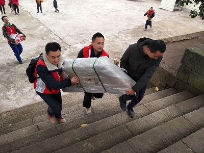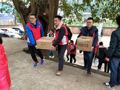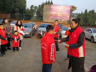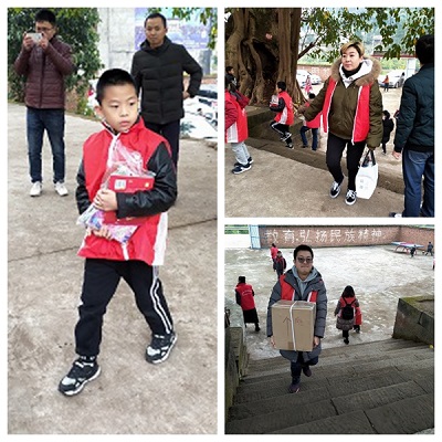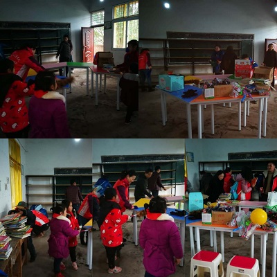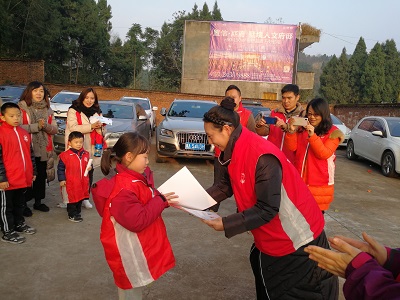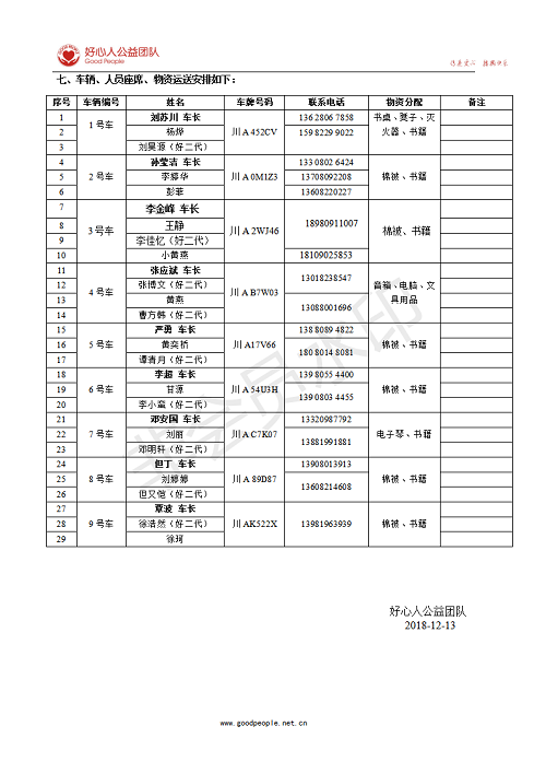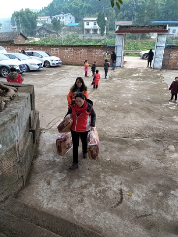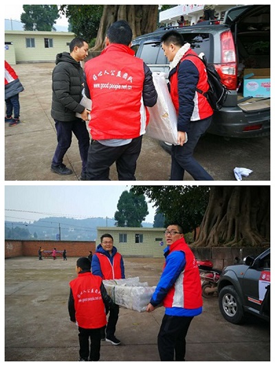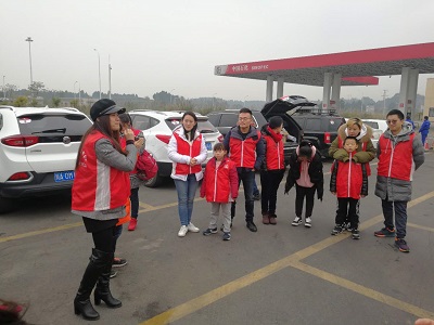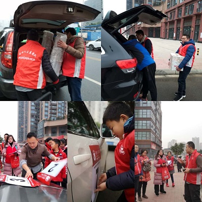 12月15日,虽然是在周末好多小朋友都想睡睡懒觉的,但是一想到今天将要去做的公益活动,好心人成员以及我们的“好二代”成员都兴致勃勃的早上8点都准时到达集合地点, 然后开始分装爱心物资,在团队的统一安排下,每辆车先装一件书,然后再装棉被,车辆空间还较大的就再分装一些体育用品,最后再帖上车贴,所有人站在一起听秘书长讲出行须知及流程安排,只听秘书长一声令下上车,我们团队车辆按顺序一字排列整理出发。