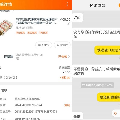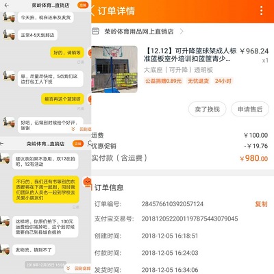 12月5日,在淘宝网上购买篮球架: 12月5日,在淘宝上购买彩虹书桌: 12月5日,在淘宝上购买救生软梯: