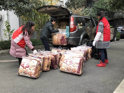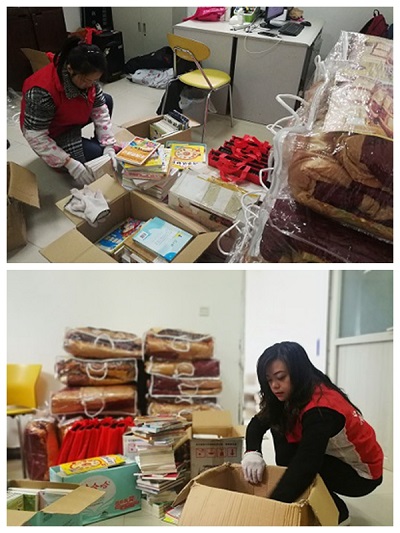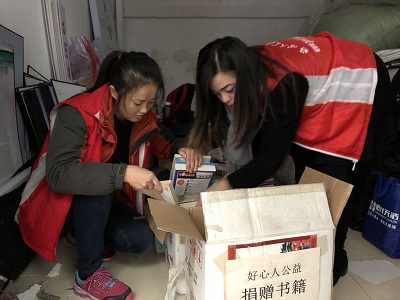 下午还有好心人成员将捐赠书籍直接送到办公室,秘书处的工作人员正在将爱心物资统一整理分装打包。 |