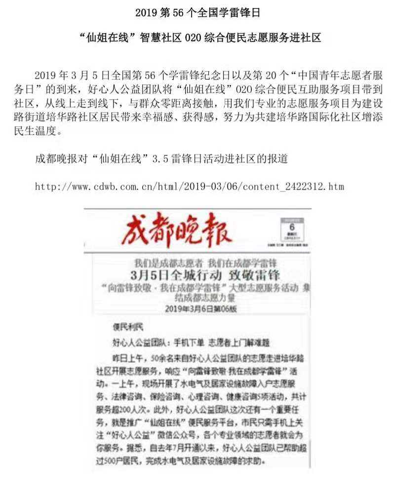 “仙姐在线”智慧社区O2O综合便民服务进社区(培华路社区站)2019第56个全国学雷锋日