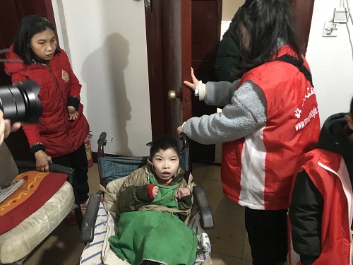 刘大姐见到我们好心人公益团队的到来,像是见到亲人一样,热情的邀请我们进屋,说晨晨刚睡醒,还没给来得及给他穿衣服。我们志愿者说“那太好了,我们来给他穿衣服吧,今天天气这么好,我们推他出去晒晒太阳。晨晨我们来了哟,还记得我们吗?” 2019123120115649.jpg |