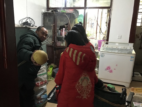 成都的冬天总是灰蒙蒙的,像今日这样阳光明媚的日子可不多见,可能是志愿者的热情给这阴冷的冬日又多添了一丝温度。12月28日上午10点20,李婷华、副理事长杨晓明、秘书长梁剑、仙姐董姝艺和谢滨遥、还有我们的志愿者代表皮骏,以及“好二代”阳胤祥小朋友在二仙桥下涧槽“仙姐在线”工作室集结,一起去慰问家住二仙桥下涧槽社区的残疾家庭刘春丽大姐。 |
