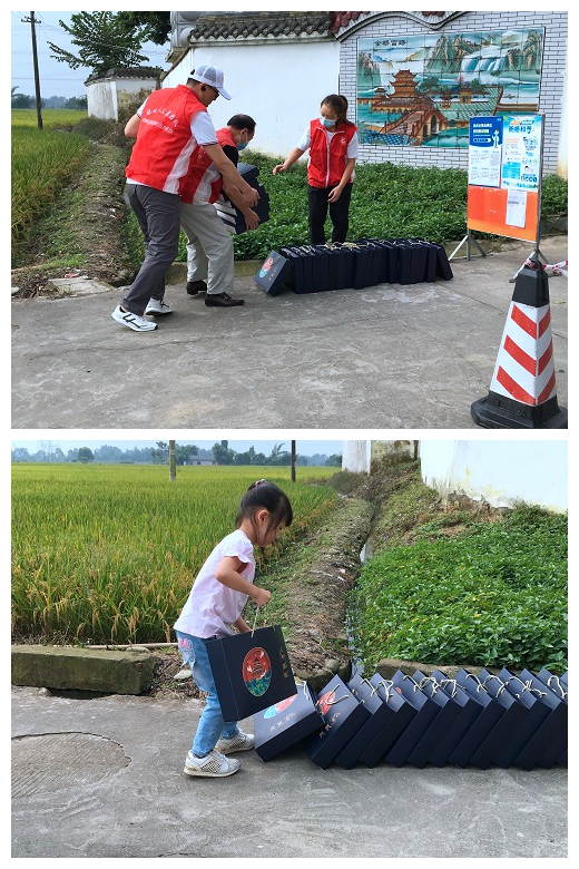 好心人志愿者将认捐的爱心礼品装入中秋定制礼盒(含:每份礼盒包括4颗芝芝定制手工月饼、4颗马边红心猕猴桃),由招募的志愿者亲手送达慰问对象。