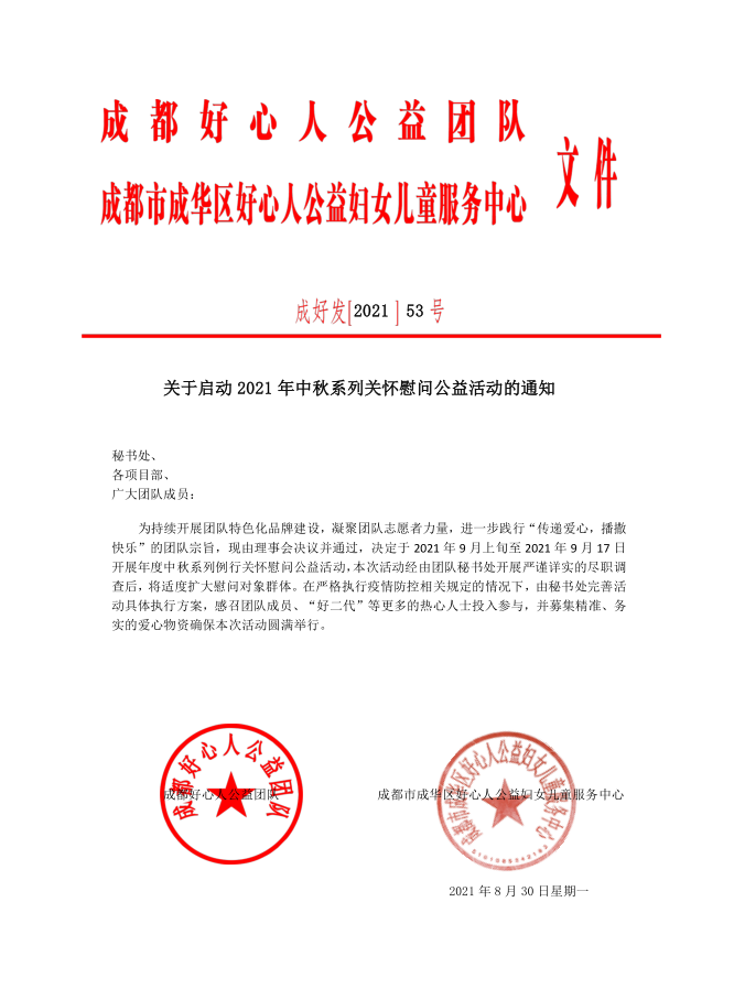 2021好心人公益团队“中秋系列关怀慰问公益活动”方案