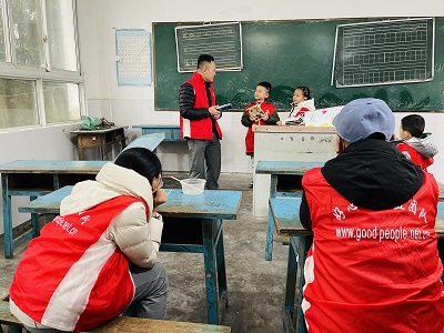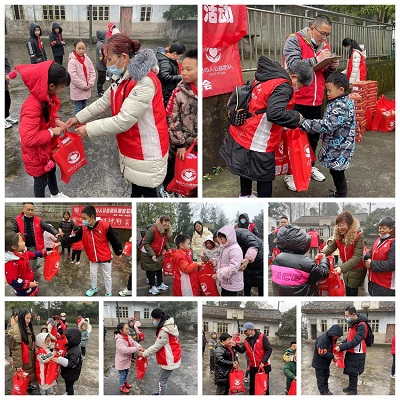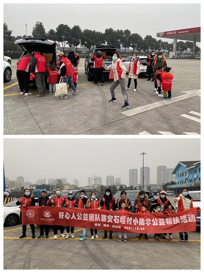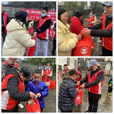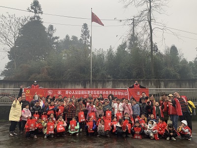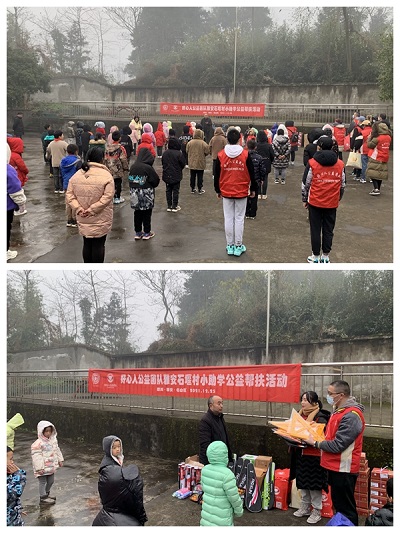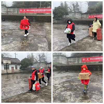 稍作休息后,大家聚集到广场上参加升旗仪式,好心人团队志愿者们对常年代课的老师们表示慰问,好二、三代成员为小伙伴们送上爱心物资:2021122815165486.jpg