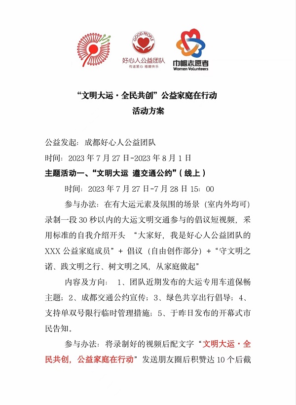 贴子主题:2023“文明大运·全民共创”公益家庭在行动 |