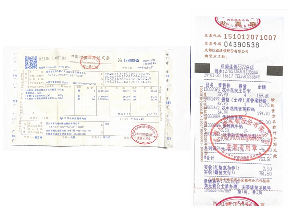 副理事长杨晓明分别在红旗超市购大米、粮油、牛奶等751.50元、舞东风超市购大米、粮油、牛奶等爱心慰问物资932.40元,合计1683.90元。