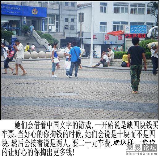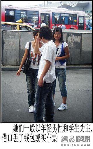 (图)别让爱心成为她们的赚钱工具--网友全程直播MM火车南站行骗 记得第一次遇见她们是上个月星期三的火车南站(我去送人时见到的).她们对我说:她们是学生,钱包掉了一个,不够钱回家了.