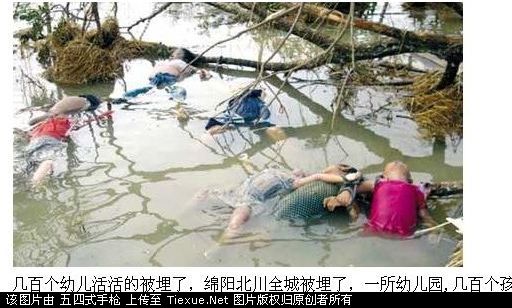 相信現在的四川是哭聲四起,我親愛的家人,請堅強,我們必將克服重重困難,重建我們的家園。不要讓我們的哭聲驚動了那靜靜躺着的孩子們,讓他們的靈魂得安息吧~~讓我們在心裏面永遠地懷念他們 |