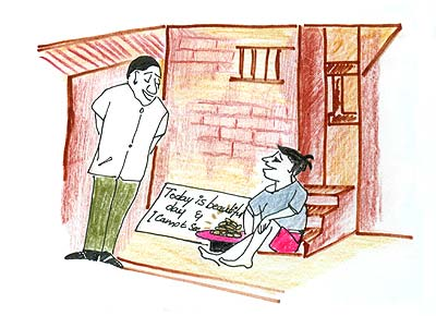 Soon the hat began to fill up. A lot more people were giving money to the blind boy. That afternoon the man who had changed the sign came to see how things were. The boy recognized his footsteps and asked, 'Were you the one who changed my sign this morning? What did you write?'