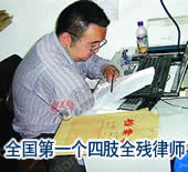 李成松律师团队网:http://www.fl168.com/Lawyer32579/ 32年前,他出生在淮安一个普通的农民家庭,由于重度残疾让他比同龄人多了一份顽强和坚韧;8年前,曾2次获得所在中学高考状元的他,因重度残疾差点与大学生活失之交臂;3年前,他以研究生考试笔试面试分别第一名的好成绩被苏州大学法学院录取;半年前,他创办了属于自己的法律咨询服务社。他就是先天残疾,双腿膝盖以下缺失,右手残缺,左手仅存两根手指的李成松。 两次高考分获文理科状元 8岁那年,李成松第一次用膝盖走进了课堂,经过几个月的勤学苦练,他左手的二指就能像常人一样书写了。他凭借着惊人的毅力,以优异成绩顺利考取了淮安较好的初中和高中。 1996年,李成松作为应届高中毕业生参加了他人生中第一次高考,他以高出当年本一分数线50分的成绩夺得了所在高中的理科状元。可是由于残疾他没有被高校录取。第二年,李成松改学文科,又以高出本一分数线47分的成绩成为了所在学校的文科状元。然而这一次,上天依旧没有眷顾这个特殊的青年,李成松再次因为体检不合格被拒之高校门外。 两次高考失利后,看着同班同学纷纷坐进大学的课堂,一直乐观自信的他也开始害怕起会与同学的距离越拉越远。高中毕业后,他一直没有间断过学习的脚步,1998年起开始全力备战南京师范大学英语专科自学考试。每天看十七八个小时的英语, 16门课程考了三次就全部通过。后来,李成松又拿到了南京大学法律本科的自考毕业文凭。 2002年,他第三次参加高考,分数超出了本一60分,他的事迹打动了盐城工学院的领导,招生办老师主动上门找到李成松,最终被破格录取到外语系。 全国第一个四肢全残律师 刚进大学,他就给自己立下目标,要用最优异成绩回报这次来之不易的求学机会。以一辆电动轮椅车代步,以膝盖作为“走路”的双腿,一条打满了补丁的裤子,让李成松穿梭在教室、图书馆、食堂和宿舍之间。 由于英语成绩优异,又有过开办英语辅导班的经验,他就在学校组建了英语学习社团,他还创办了翻译协会、英语角活动,组织了英语口语比赛。社团人气最旺的时候达300多人。大学四年里让李成松最高兴的事情要数2003年,他报考了国家司法统一考试,并以优异的成绩一次性通过考试,拿到了律师职业资格证书,成为全国第一个四肢全残的律师考试合格者。 2006年,他又以笔试和面试均为第一名的成绩,被苏州大学法学院录取。 创办“圣克尔法律咨询社” 李成松眼看自己硕士就要毕业了,却再次遭遇了困境――没有一个律师事务所愿意接纳他。这时,李成松的同学、已是一家律师事务所律师的孙正彤提出和他合作,创办自己的法律咨询服务社。2008年11月,当李成松还在犹豫和徘徊时,沧浪区劳动和社会保障局建设的沧浪区大学生创业联盟孵化基地正式成立,李成松和他的团队率先报名入驻。在创业初期,从租金、门面装修、网络、企业开户、办理营业执照、提供就业指导等方面沧浪区劳动和社会保障局以及双塔街道给予了他们很大的支持和帮助。在众人的努力下,2008年12月,李成松位于定慧寺巷社区叶家弄22号的“圣克尔法律咨询社”正式挂牌成立。 虽然法律咨询社开业不到半年,但已经受理了近500起前来咨询的案例。为了兼顾工作和学习,他将宿舍搬到了工作室里,不满10平方米的卧室里刚好摆下一张床铺,如今李成松每天工作的时间都要超过12个小时。为了让更多人了解自己的团队,为更多市民提供更为方便和快捷的咨询平台,2009年3月李成松利用网络平台开设了“李成松律师团队”网,为广大劳动者提供专业法律服务。然而李成松创业半年以来,为很多外来民工、残疾人追讨赔偿、处理劳动纠纷、代理过婚姻继承等案例,让人敬佩的是很多案例都是在李成松得知情况后,主动提出为当事人免费提供法律援助。文字内容出处:http://www.chineselawyer.com.cn/pages/2009-6-10/s52279.html