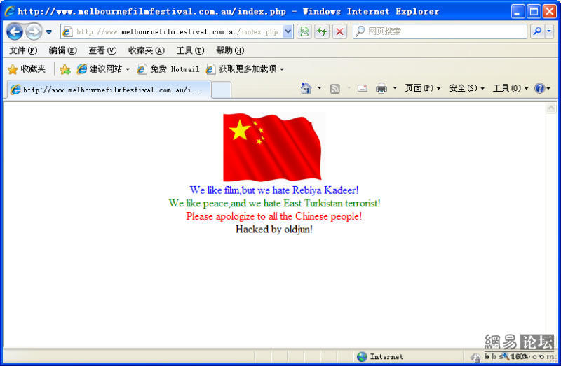 贴子主题:[转帖] | 速递]墨尔本国际电影节官网被黑 黑客不满播放热比娅纪录片 |