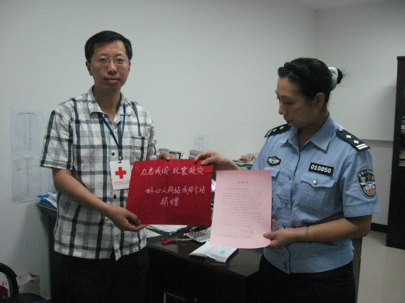 绵阳市区进入了大量的伤员和灾民,作为本市的人身平安者,我们带上干粮和矿泉水去看望了医院里的病人,我们也很多天没吃上米饭热菜,但各种条件比县乡来的灾民好多了.儿子把自己近三十元的零钱都捐到花园南街居委会,大人孩子的衣服鞋子送去了一大包.我们在自己的单位也捐了钱,同时作不报名的志愿者帮助大家转移和维护各个住处的清洁卫生以防疫情.