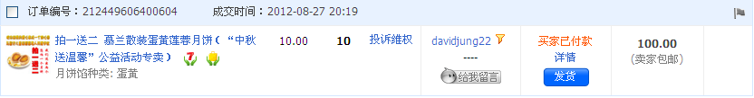 (1)通过好心人公益团队的“好心人创业家园”汉丁shopping淘宝网店http://handincd.taobao.com/,组织好心人成员对此次公益活动的专卖月饼进行拍买捐赠,同时面向社会开展“义买义卖,号召更多的爱心人士参与到此次活动中来,让更多好心人与我们一起关注、关爱留守儿童和孤寡老人。“中秋送温馨”公益活动月饼专卖网址http://item.taobao.com/item.htm?id=19486448747。您拍一个月饼,我们送出两个,把您的爱心和我们的爱心串在一起,即把您拍的一个月饼和我们赠送的一个月饼合在一起共两个,送到留守儿童和孤寡老人的手上,与他们一起共度中秋佳节。(例如:好心人团队成员或网友拍一个10元的月饼,我们则会送出两个价值20元的月饼。)最后,我们送出的月饼数,将是拍得月饼数的两倍。