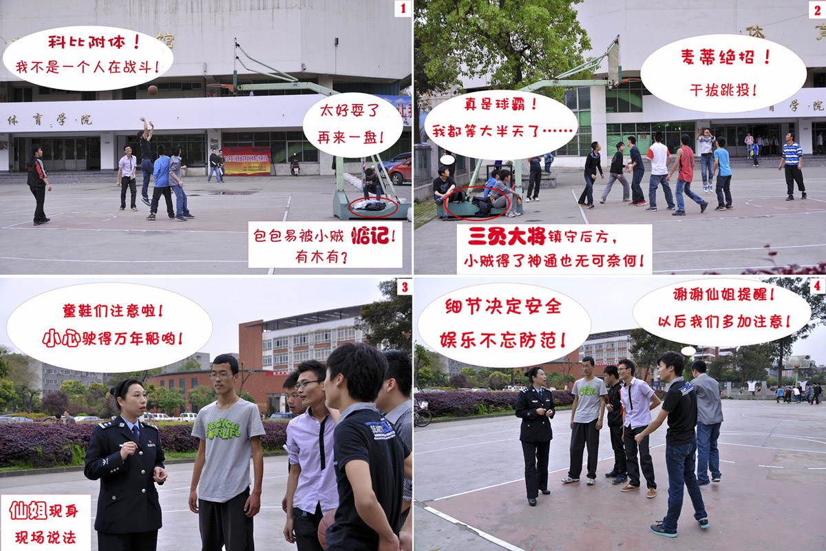 #理工hold#【篮球架下的安全隐患】课余打打球,强身健体 。不过,钱包和iphone,可不要扔在一边不管。现在的小贼演技了得,装嫩卖萌,样样精通 ,趁你不注意,立马顺手牵羊。这两天又接两起此类盗案,刚才仙姐特地到理工大学篮球场现身说法,提醒广大童鞋:娱乐要尽兴,警惕勿放松! 20125818275464.jpg