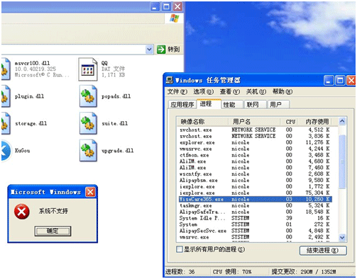 | 2、骗子发送压缩文件传木马; | 随之,“买家”传来一个压缩包,称里面有所需购买物品的清单,让李小姐看看是否有货。李小姐万万没想到自己接收压缩包后解压打开,点击exe文件后电脑立即就中了木马。此时木马会弹出页面虚假提示“系统不支持“,使会员放松警惕,并点选确认。 20144620273928.png |